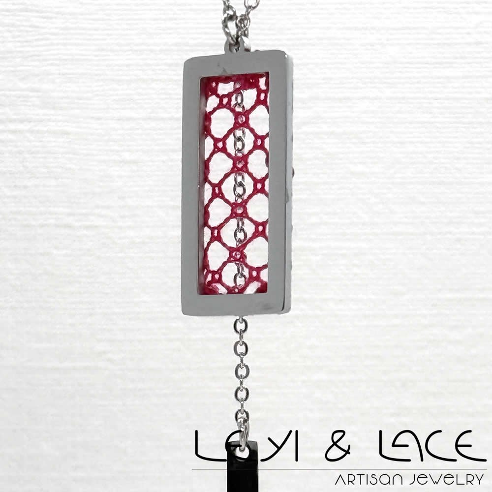El toque especial lo aporta la delicado Encaje de Bolillos en seda de color rosa que acompaña al colgante. Esta combinación no solo realza tu estilo, sino que también lo convierte en un accesorio perfecto para cualquier ocasión.