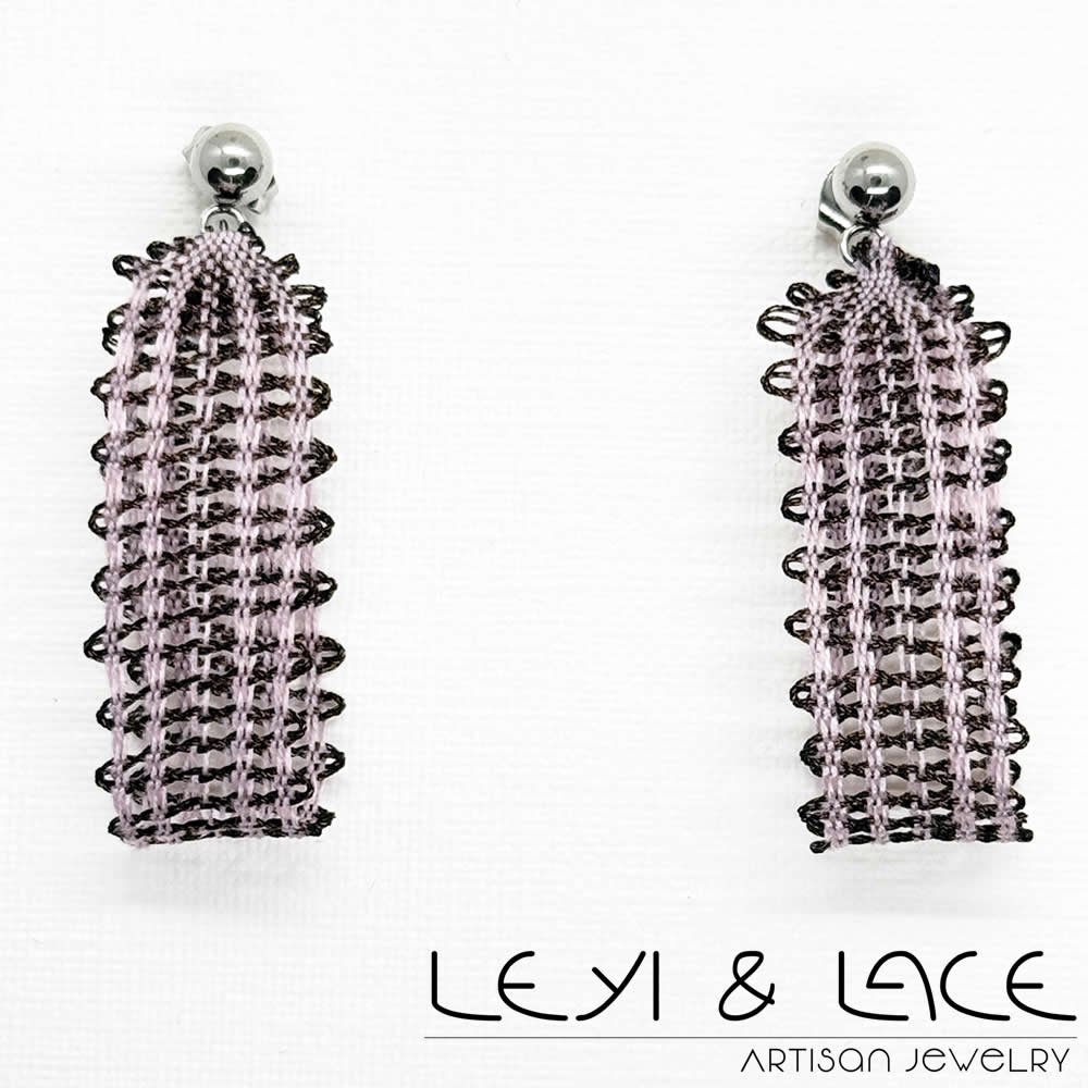Estos elegantes pendientes están elaborados con hilo de seda y metalizado en tonos rosa y marrón, creando una combinación espectacular que capta la atención. Además, el cierre a presión está hecho de acero hipoalergénico, garantizando comodidad y seguridad durante todo el día.
