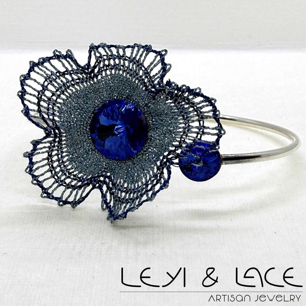 La pulsera con Encaje de Bolillos en forma de flor es una joya que no pasa desapercibida. Elaborado con hilos metalizados en colores azules, esta pulsera destaca por su diseño delicado y divertido. Cada detalle resalta su exclusividad, convirtiéndolo en la pieza perfecta para añadir un toque especial a cualquier atuendo.